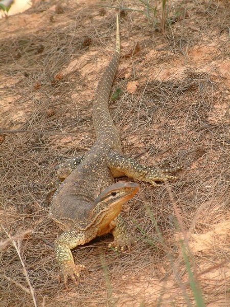 We stopped to take a picture of the sands and have a swim, while we were changing, we spotted a big Goanna. Took a whole load of pictures of it until it got bored and wandered off up the dunes.
