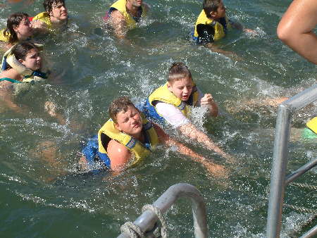 On the return trip, they let the kids do wakeboarding and boom netting from the boat. The speed boat never arrived, so Jo never got her speed boat ride.