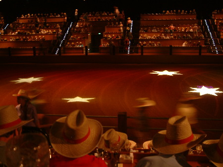 In the evening we went to see the Great Australian Outback Adventure. This is a sit down dinner while watching a horse show. The food was excellent, and the show pretty good. I started getting wheezy as the night went on, as I am very allergic to horses.