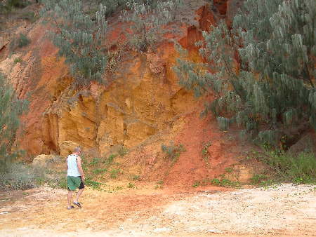Next we went to Rainbow Beach, so called because there are many colours of sand, Reds, browns, oranges, golds, blacks, whites. The colours are created by the rain leeching out minerals from the sand.