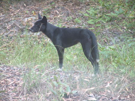 Just before we left the rain forest we saw a wild black, Dingo. Black dingos are very rare with less than 5% of the population being black.