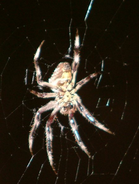 We moved camp today, and while we were putting Kevin's tent up he spotted a huge spider on the tree behind the camper.