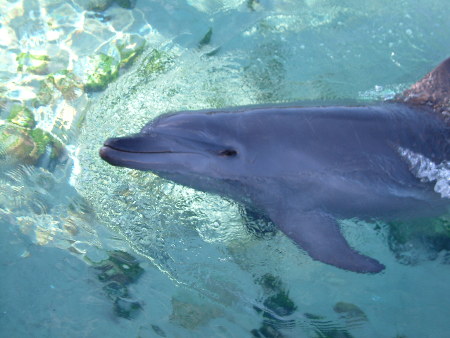 Near the end of the day we were at the dolphin pools, and the dolphins came to play with us, splashing us with water, and waving to us.