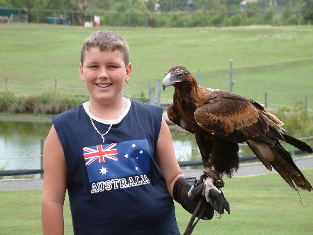 Jo had her picture taken with a koala and a crocodile, Kevin had his taken with a wedge tailed eagle.
