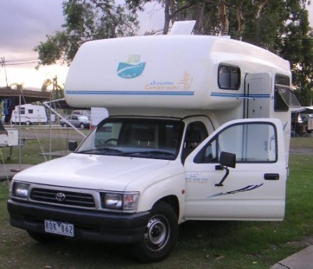 Collected the camper. Its a 4 berth camper on a Toyota Hi lux 2.7 petrol truck. It is starting to show its age, but it will suit our needs OK.